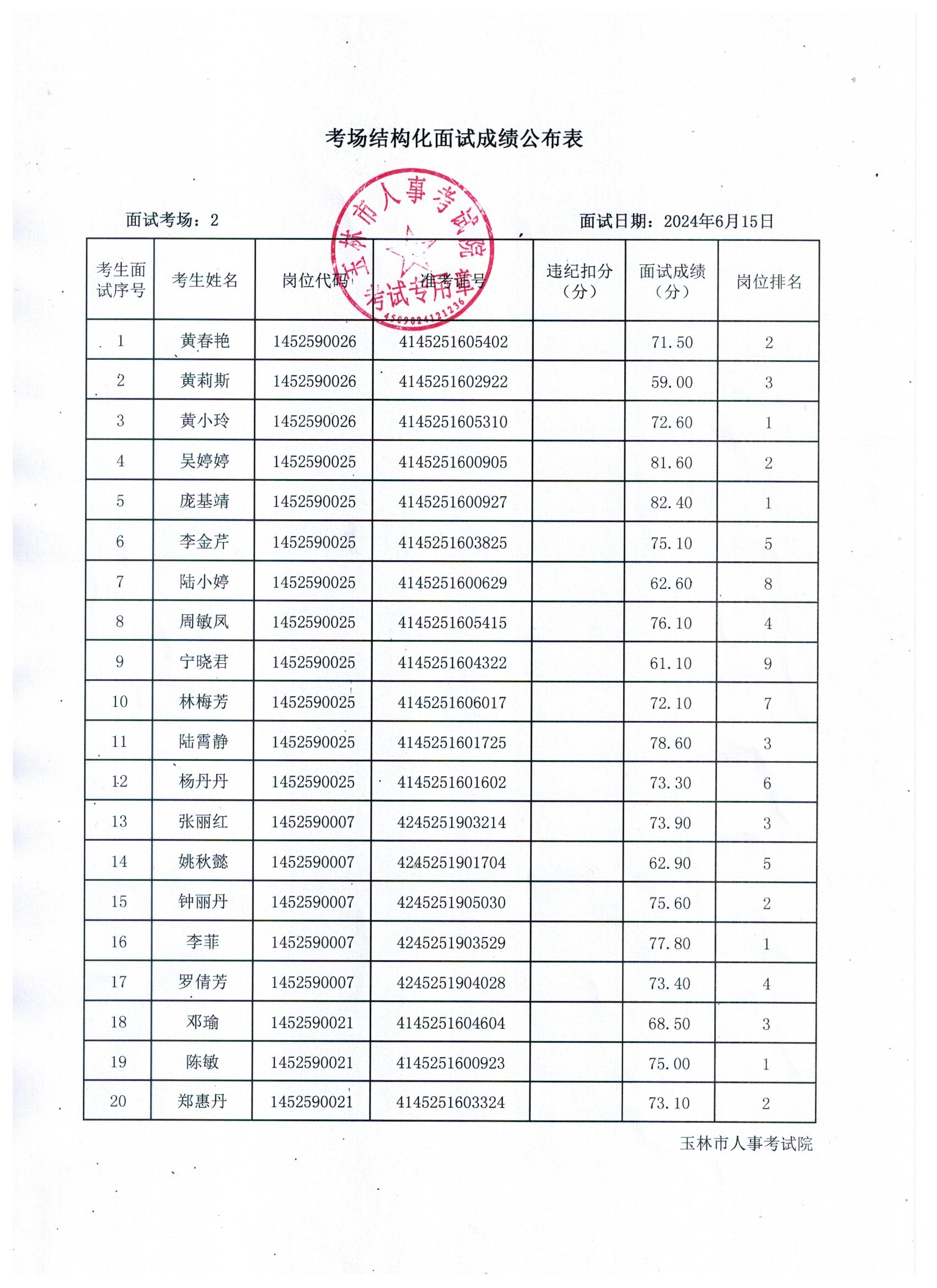 原文標題:2024年玉林市直(含玉州區(qū)、福綿區(qū)、玉東新區(qū))事業(yè)單位公開招聘人員面試成績公布(6月15日)