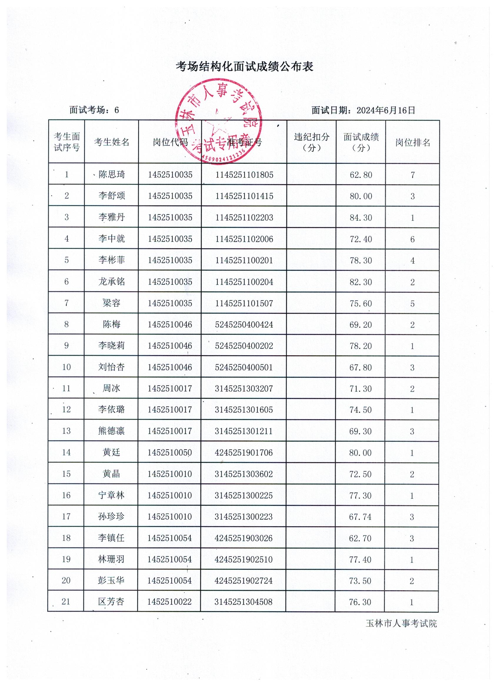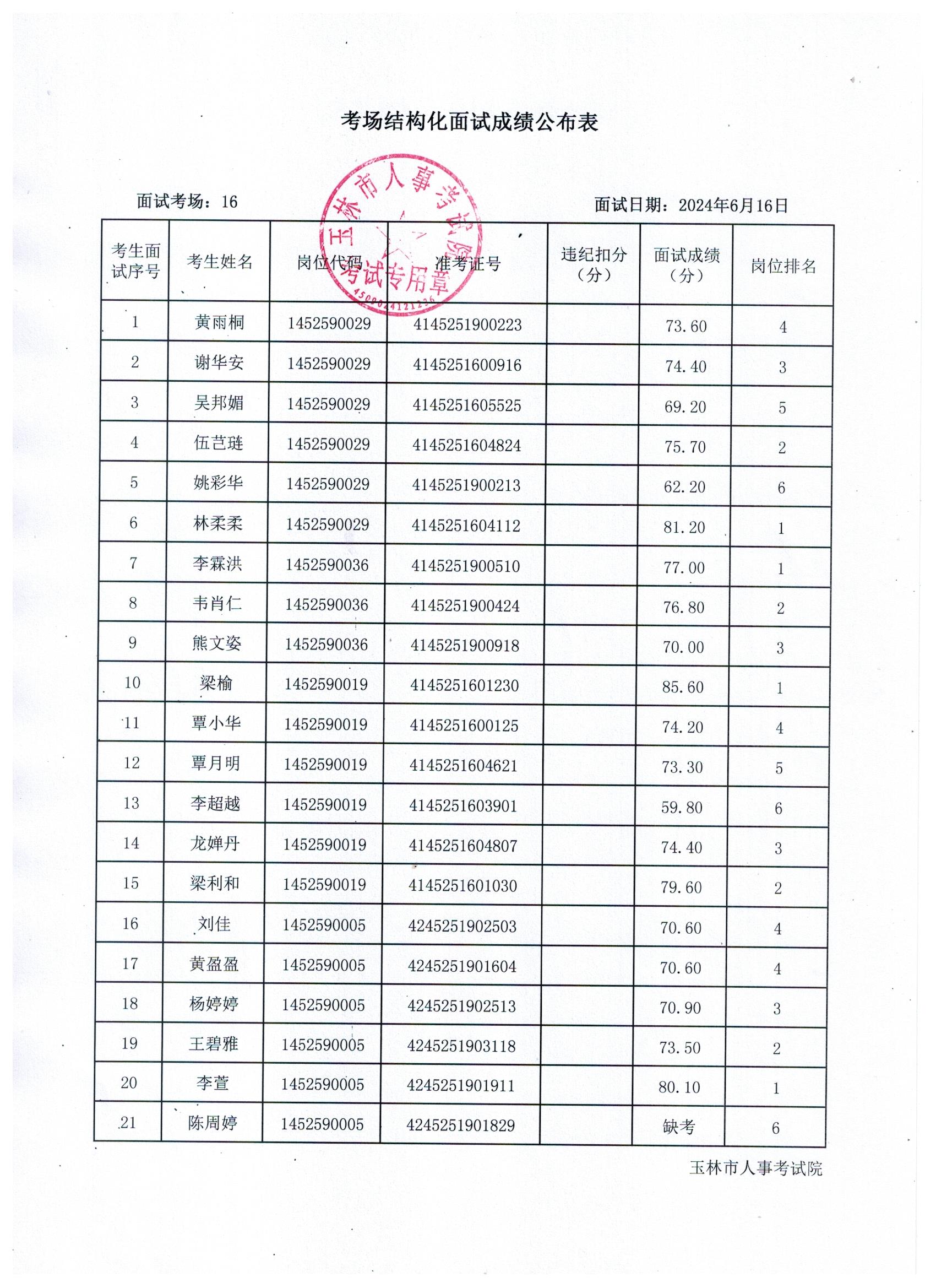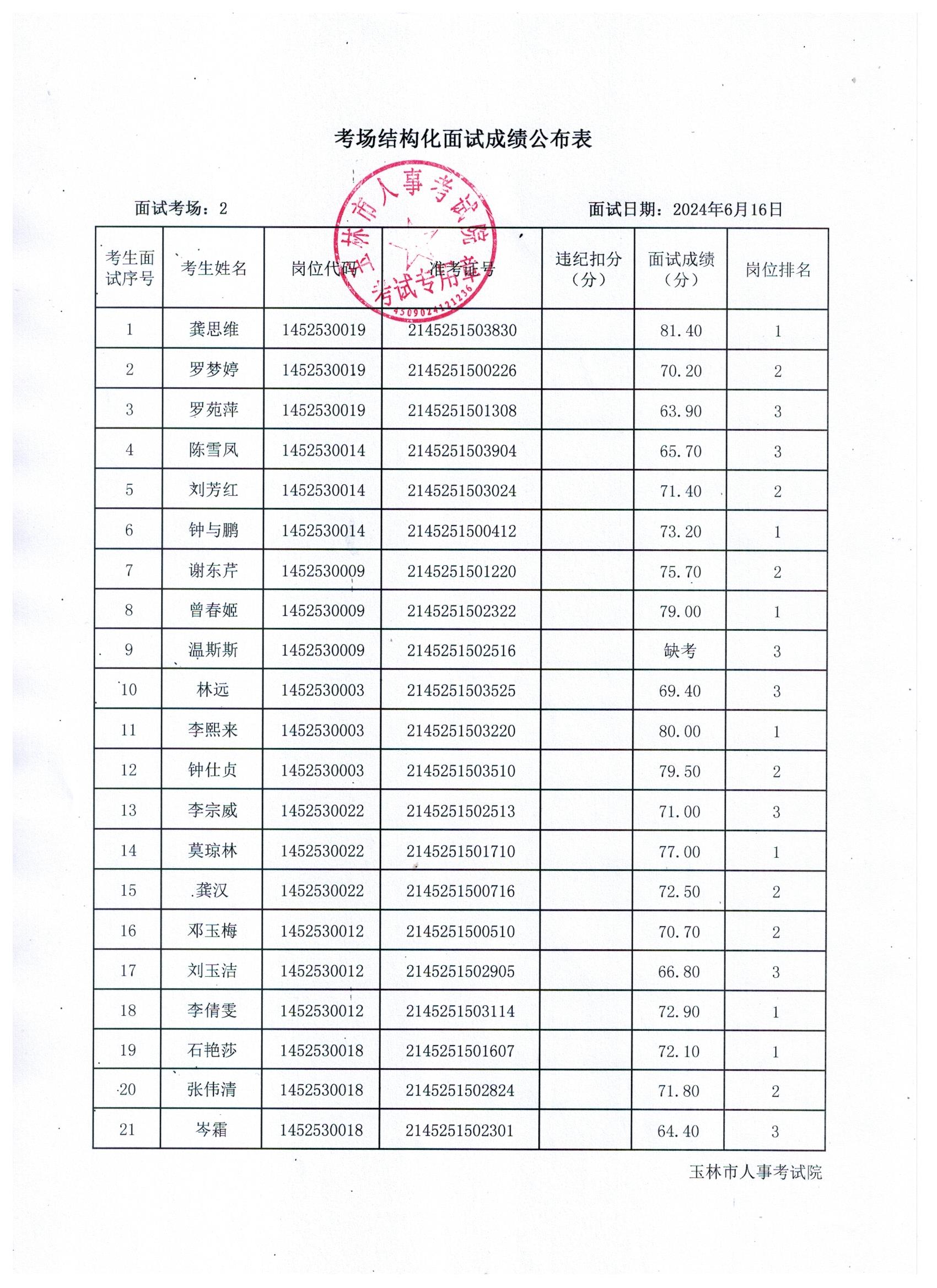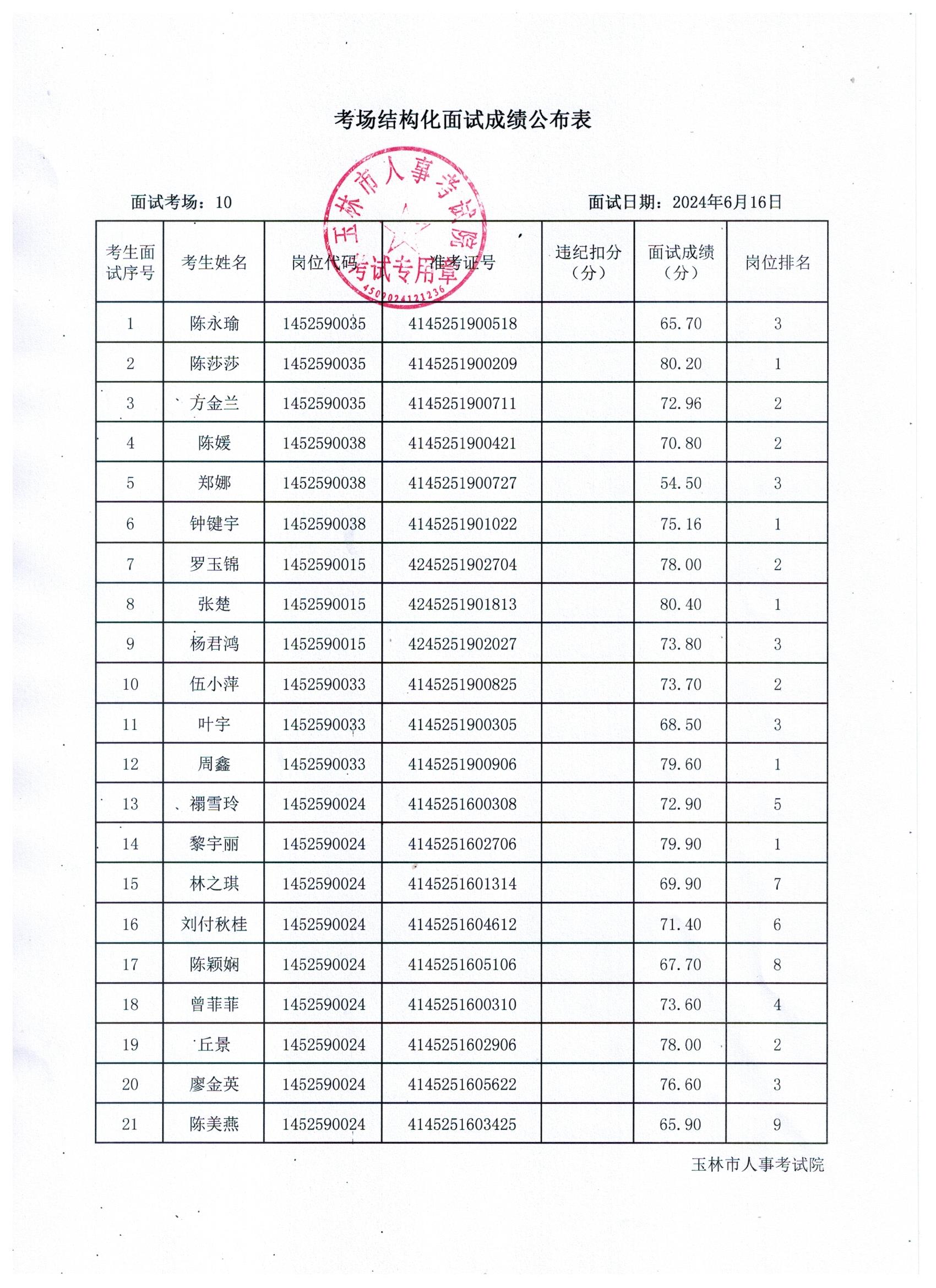 原文標題:2024年玉林市直(含玉州區(qū)、福綿區(qū)、玉東新區(qū))事業(yè)單位公開招聘人員面試成績公布(6月16日)