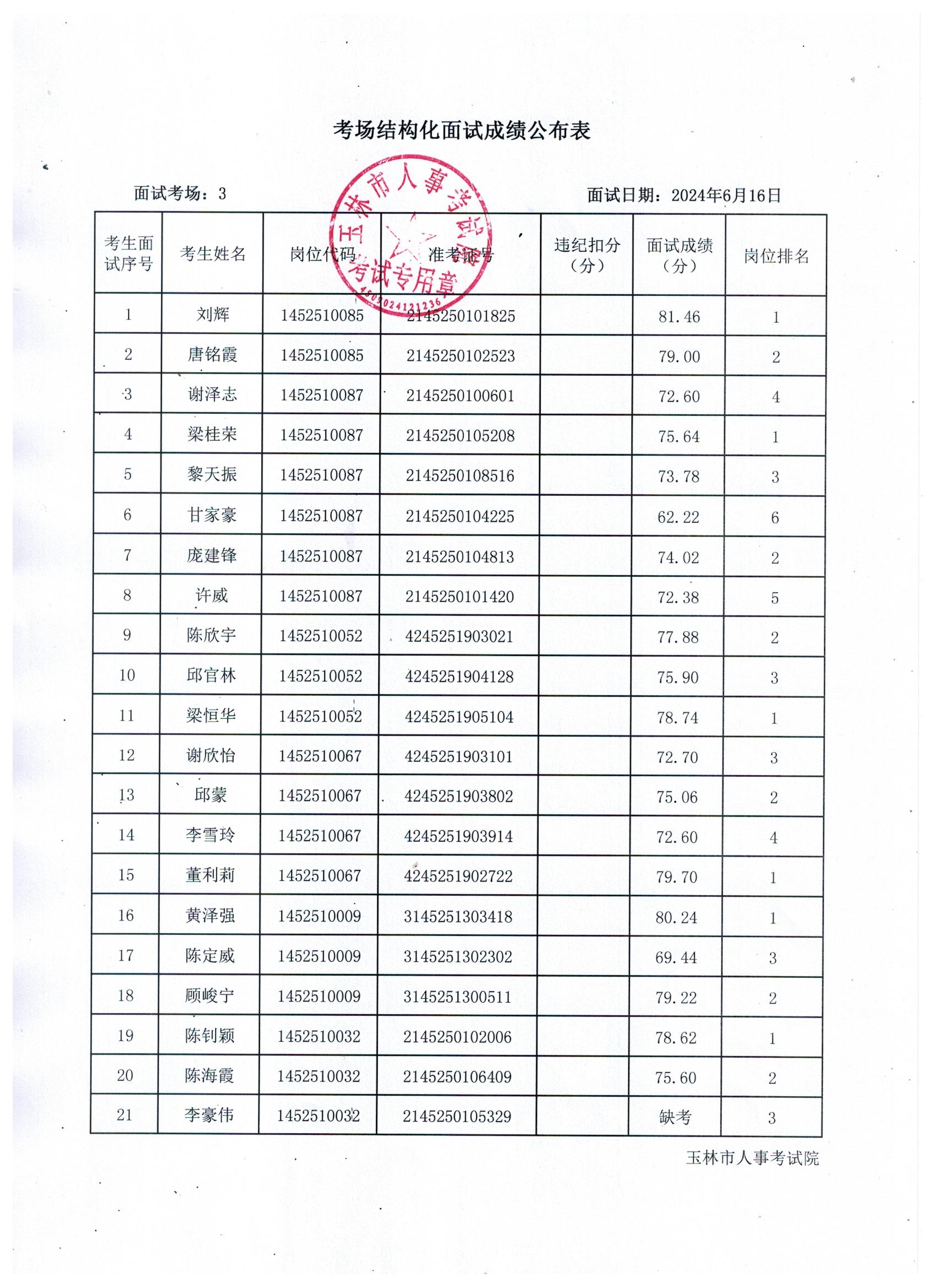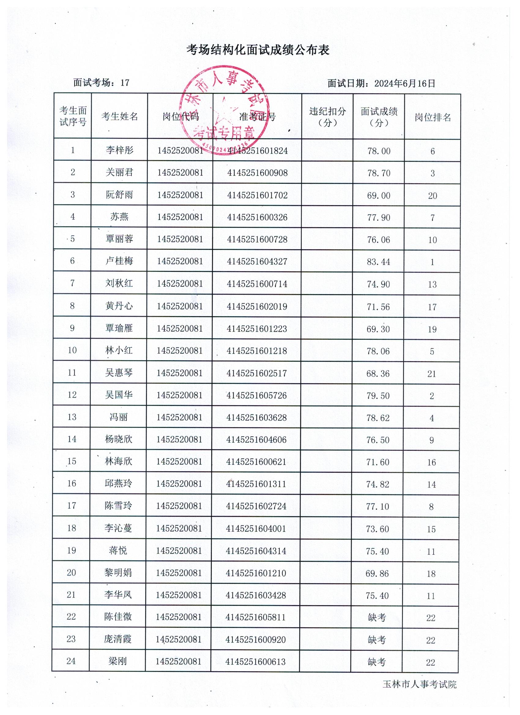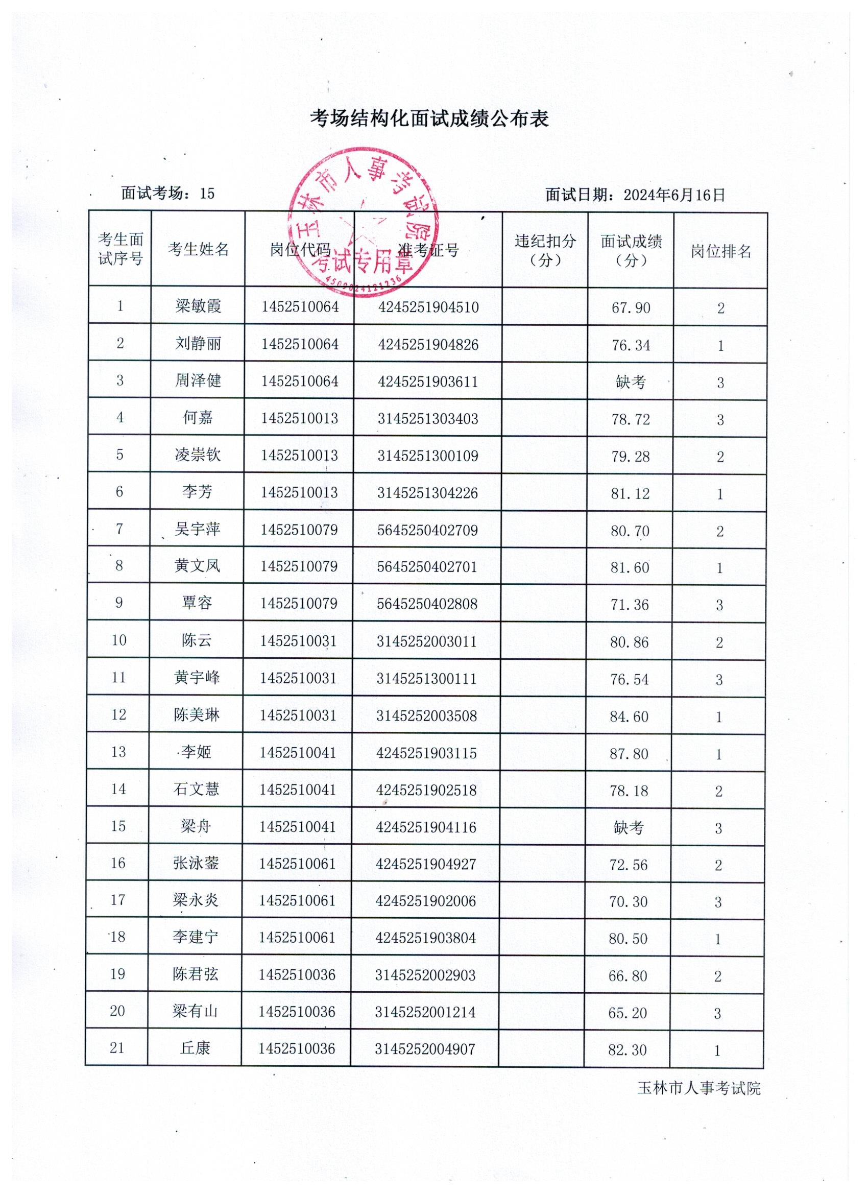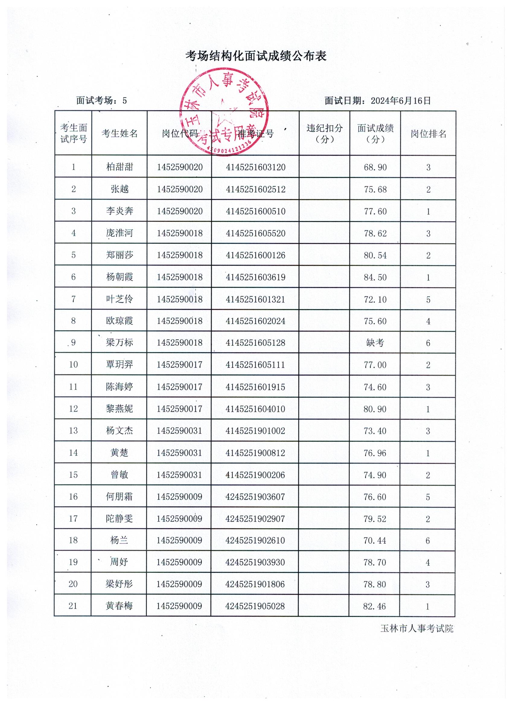 原文標題:2024年玉林市直(含玉州區(qū)、福綿區(qū)、玉東新區(qū))事業(yè)單位公開招聘人員面試成績公布(6月16日)