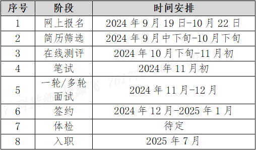 (面試、簽約及體檢時間以各單位實際情況為準)