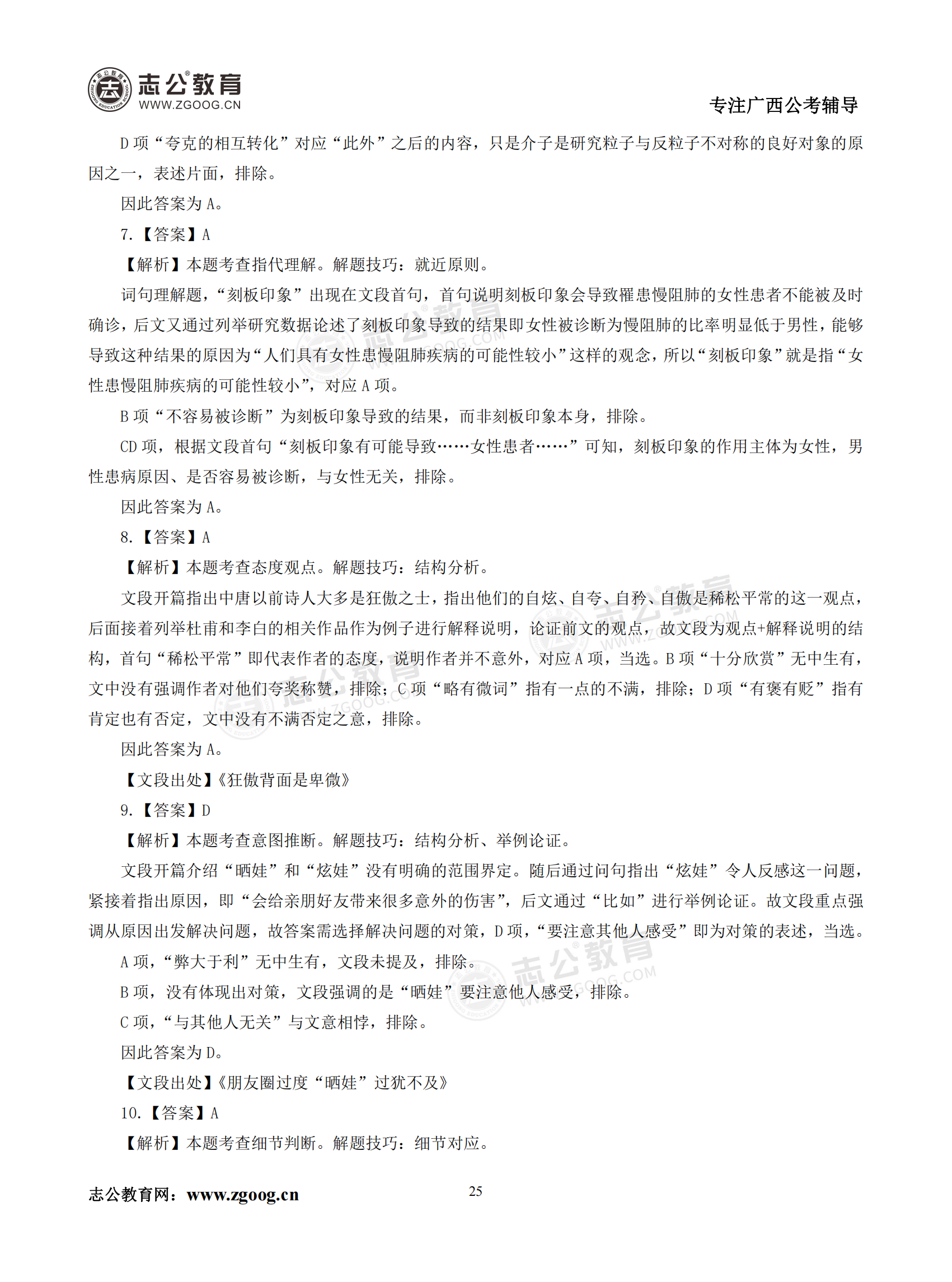 【公考模塊練習(xí)】言語理解題一(答案)