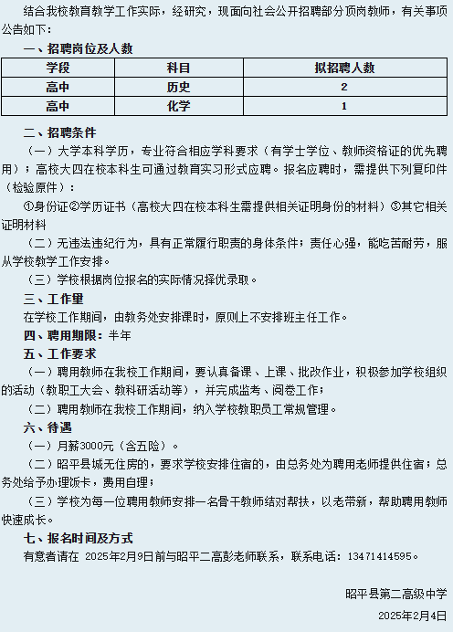 2025年昭平縣第二高級中學(xué)春季學(xué)期招聘頂崗教師公告