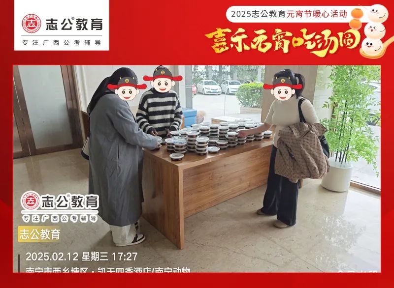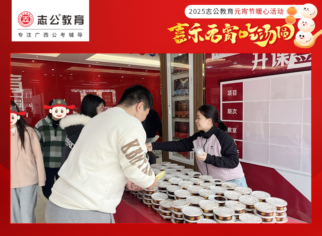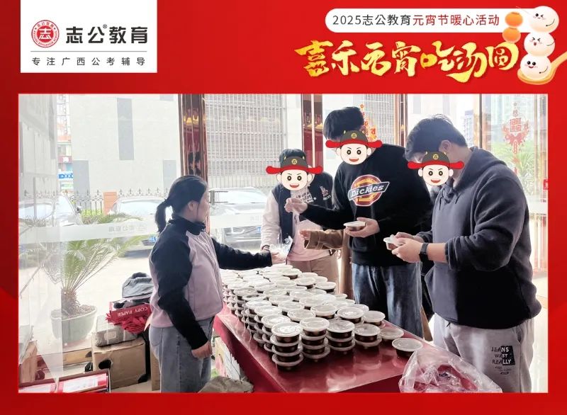 在緊張忙碌的公考備考之路上,每一位學員都在為了心中的夢想全力以赴 。堆積如山的備考資料,一場接一場的模擬考試,長時間的學習讓他們承受著巨大的壓力 。而這份在元宵節(jié)送上的湯圓,就像冬日里的暖陽,夏日里的清風,為他們帶來了片刻的慰藉 。