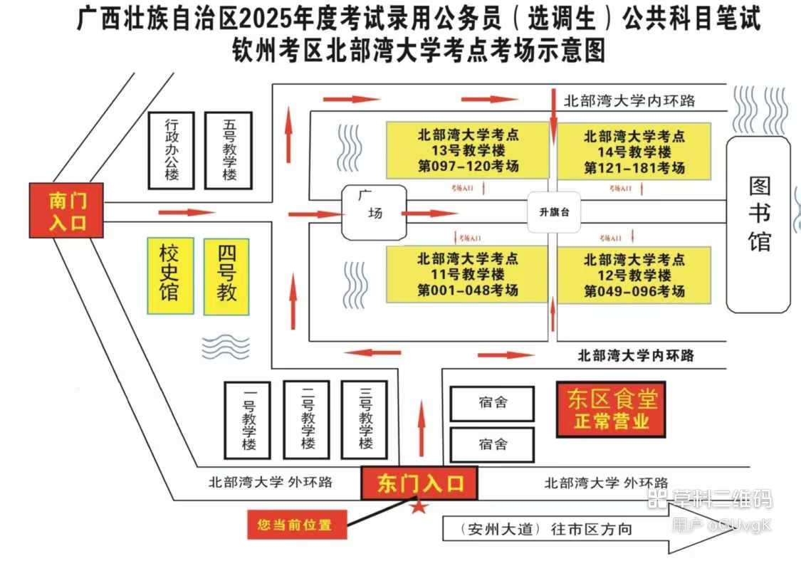 欽州考區(qū)共設兩個考點,分別為北部灣大學考點、北部灣職業(yè)技術(shù)學??键c。(考點地址和具體考場安排請掃附后的二維碼查看)