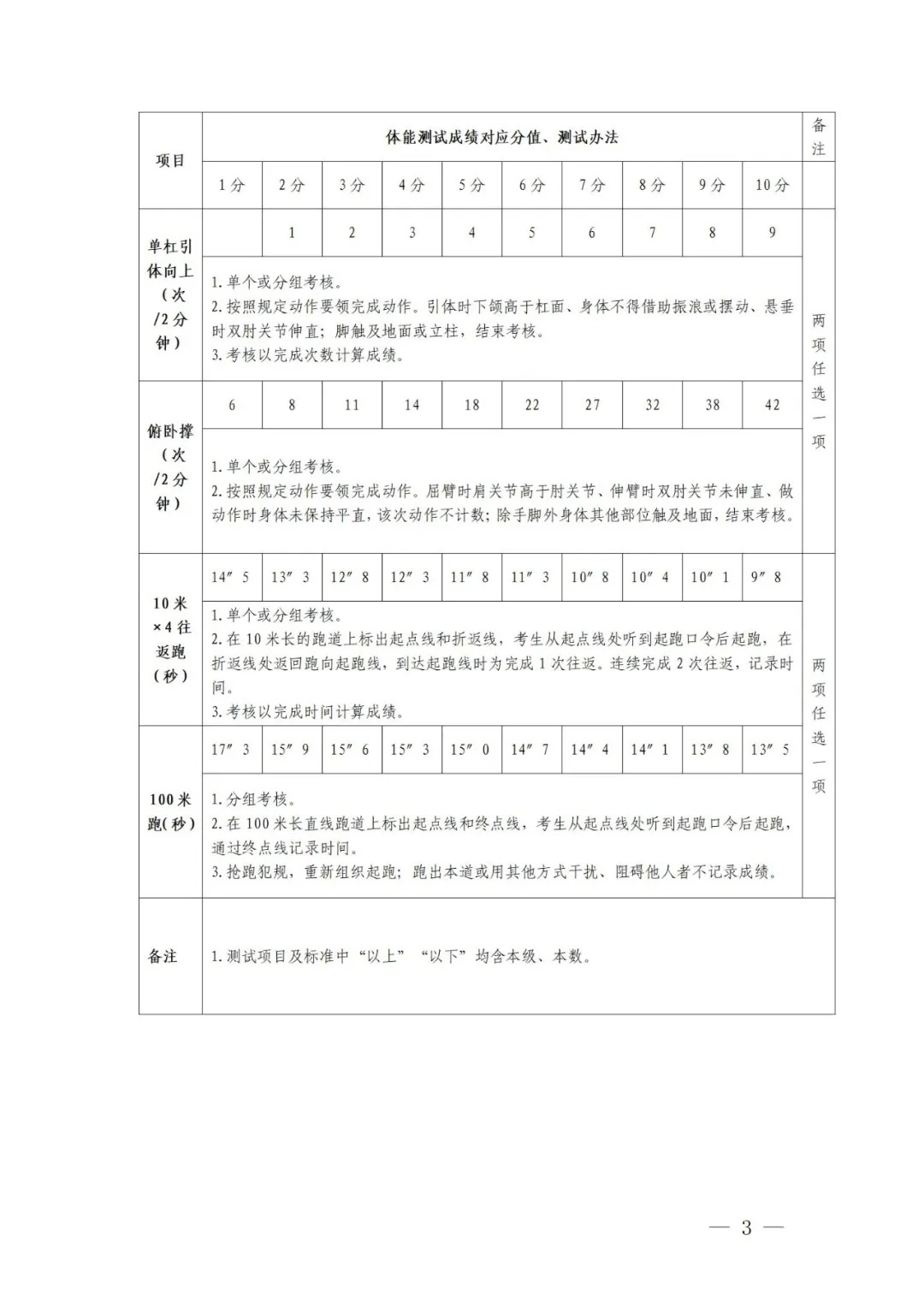 測試時間、地點具體以通知為準,應(yīng)聘人員須參加體能測試,并當場簽訂《體能測試健康安全風險承諾書》。體能測試有兩項及兩項以上不得分的視為不合格(標準參照附件)。