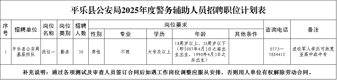 (四)本公告未盡事宜,由平樂縣公安局公開招聘工作領(lǐng)導(dǎo)小組辦公室負(fù)責(zé)解釋。
