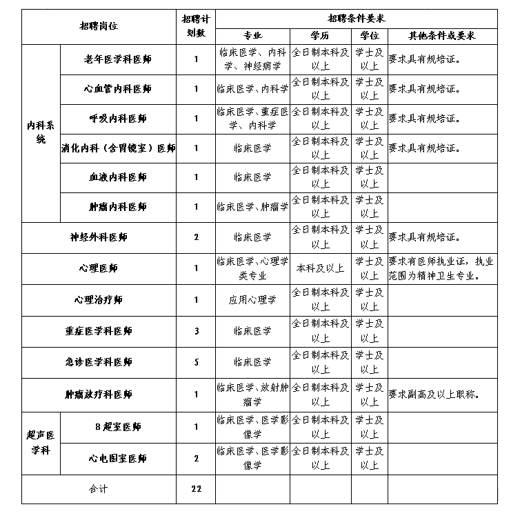 注:初中級(jí)職稱應(yīng)聘人員原則上年齡要求為35周歲及以下;如為副高以上職稱,年齡可放寬至45周歲;學(xué)歷層次高者優(yōu)先。醫(yī)師崗位中如要求具有規(guī)培證條件的是指已取得規(guī)培合格證書(shū)(含通過(guò)規(guī)培結(jié)業(yè)考試未領(lǐng)合格證書(shū))或已取得中級(jí)及以上職稱人員。
