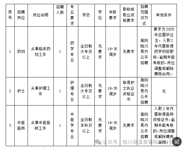 報(bào)名地點(diǎn):陸川縣溫泉鎮(zhèn)陸城衛(wèi)生院五樓辦公室。