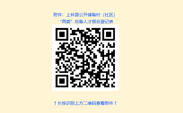 報名方式一:現(xiàn)場報名?,F(xiàn)場報名地點為各鄉(xiāng)鎮(zhèn)黨建辦,現(xiàn)場報名者須填寫《上林縣公開儲備村(社區(qū))“兩委”后備人才報名登記表》(詳見附件,以下簡稱《報名登記表》),并提供本人身份證、學歷學位證書、戶口簿原件及復(fù)印件(原件供現(xiàn)場審核;復(fù)印件以供存檔,不退回)各1份,近期小二寸正面免冠照片2張。