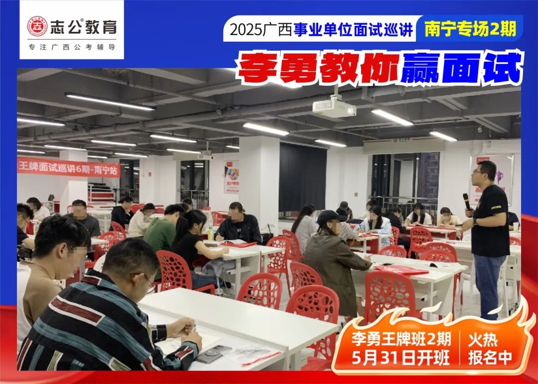 隨著2025廣西事業(yè)單位——李勇教你贏(yíng)面試【南寧專(zhuān)場(chǎng)2期】線(xiàn)下巡講落幕,這場(chǎng)"面試攻堅(jiān)戰(zhàn)",不僅點(diǎn)燃了備考熱情,更讓志公教育"幫助人才實(shí)現(xiàn)更高質(zhì)量的就業(yè)"的使命,在八桂大地結(jié)出更多碩果。