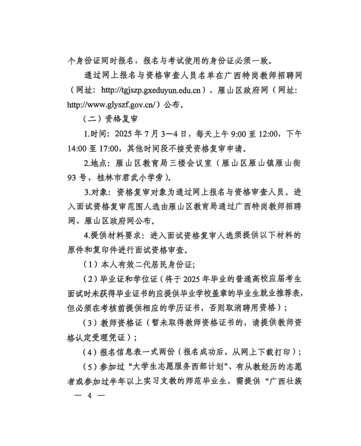 桂林市雁山區(qū)2025年特崗教師招聘公告