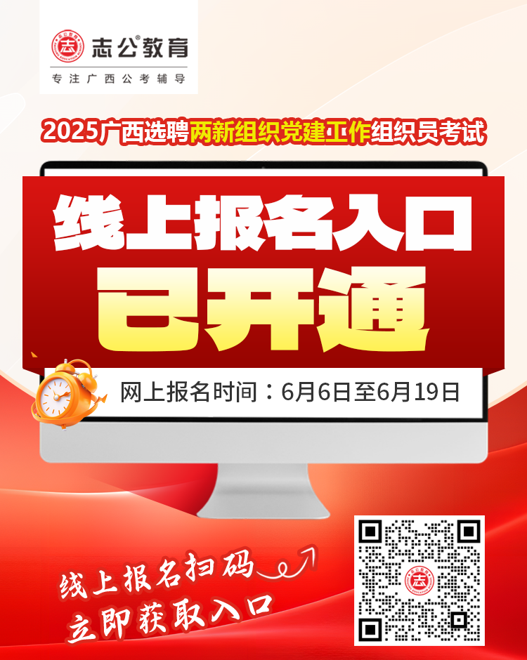 報(bào)名入口開(kāi)通!2025年廣西壯族自治區(qū)選聘兩新組織黨建工作組織員今起報(bào)名,附免費(fèi)備考資料!