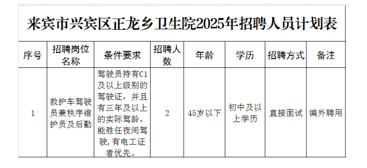 2.報(bào)名地點(diǎn):來賓市興賓區(qū)正龍鄉(xiāng)衛(wèi)生院辦公室(住院樓三樓)。