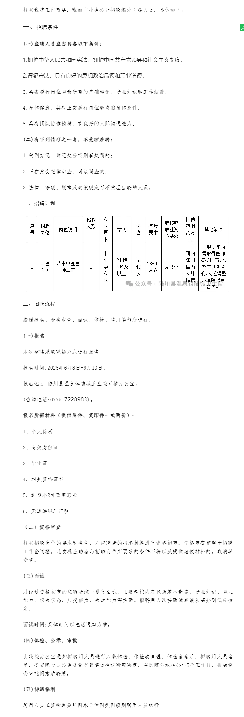 原文標題:陸川縣溫泉鎮(zhèn)陸城衛(wèi)生院公開招聘編外醫(yī)務人員公告