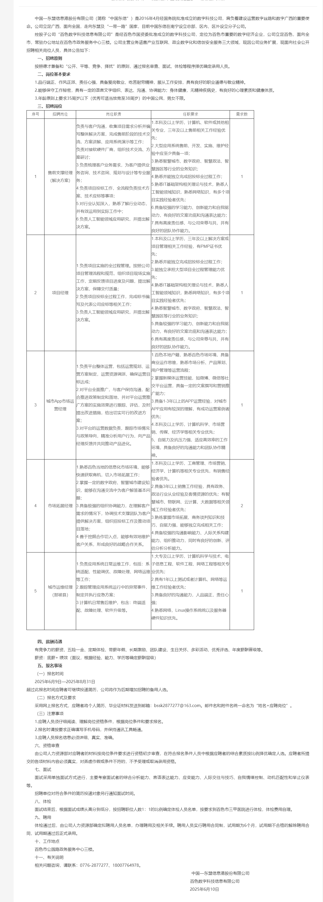 中國—東盟信息港股份有限公司2025年人才招聘公告