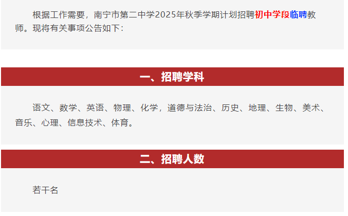 原文標題:南寧市第二中學新民校區(qū)2025年臨聘教師招聘公告