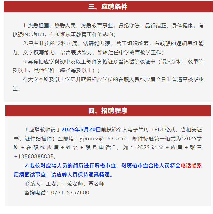 南寧市第二中學新民校區(qū)2025年臨聘教師招聘公告