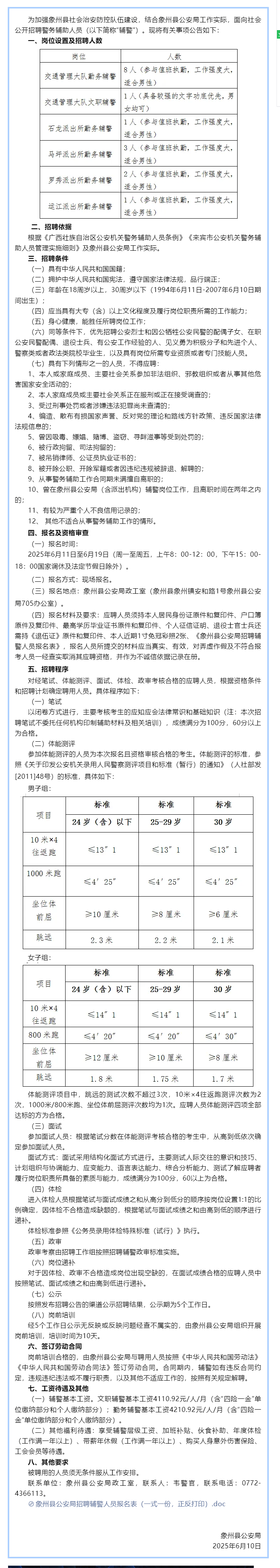 原文標題:象州縣公安局招聘16名輔警的公告
