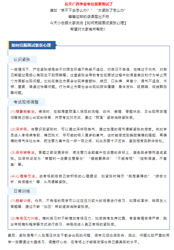 后天面試!快看25年廣西事業(yè)單位面試考場(chǎng)示意圖、克服面試緊張心理方法!