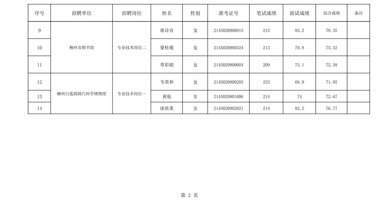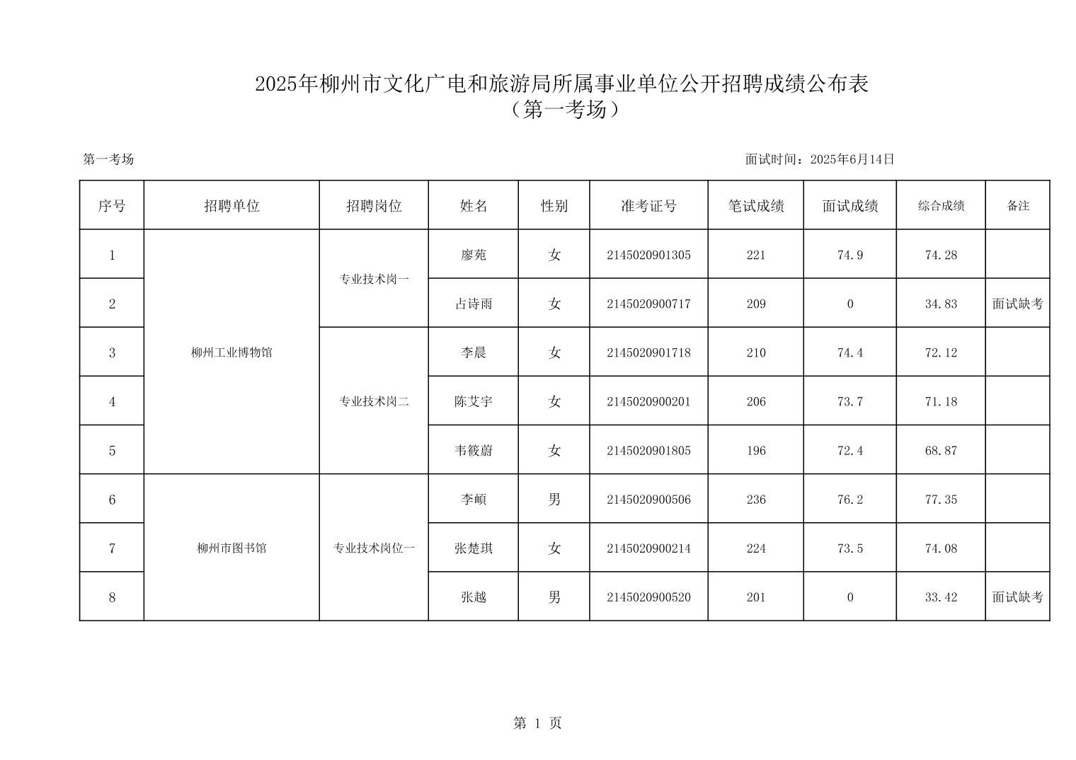 2025年柳州市文化廣電和旅游局所屬事業(yè)單位公開招聘成績公布表