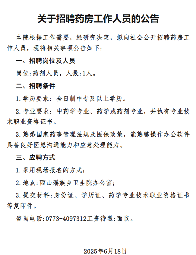 原文標(biāo)題:灌陽縣西山瑤族鄉(xiāng)衛(wèi)生院關(guān)于招聘藥房工作人員的公告
