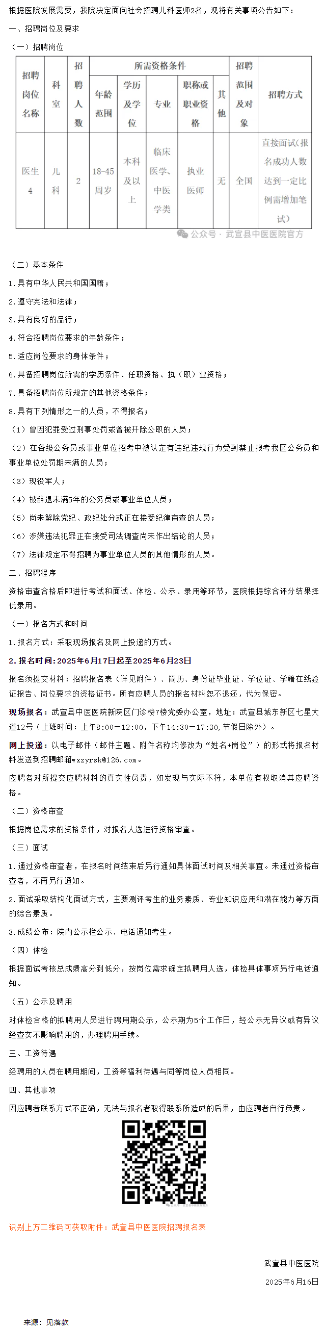 原文標題:武宣縣中醫(yī)醫(yī)院2025年公開招聘編外聘用人員公告(第一期)