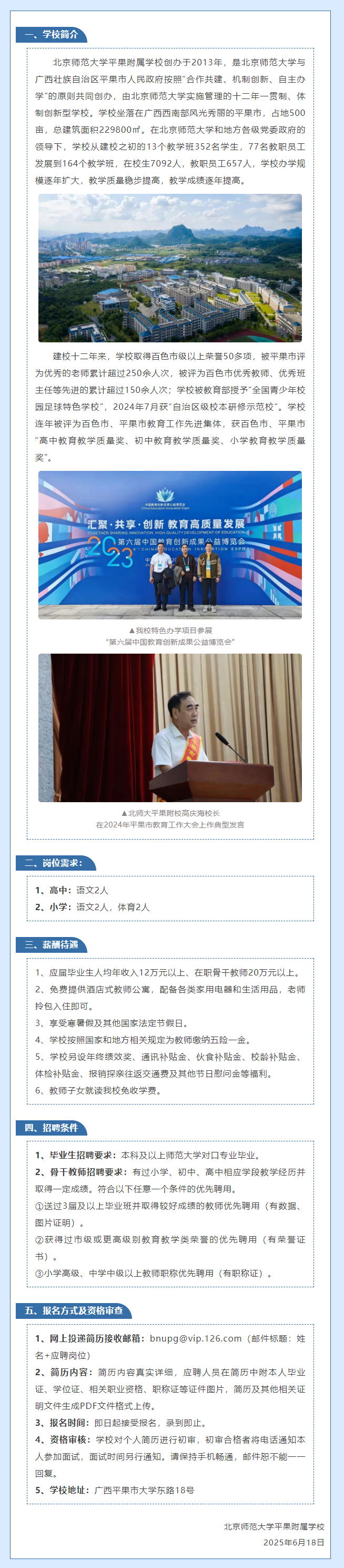 2025年北京師范大學(xué)平果附屬學(xué)校教師招聘6人