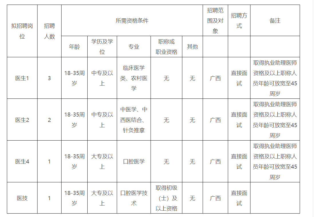 根據(jù)醫(yī)院發(fā)展需求,決定面向社會(huì)招聘醫(yī)生和醫(yī)技崗位人員7名,現(xiàn)將招聘有關(guān)事項(xiàng)公告如下: