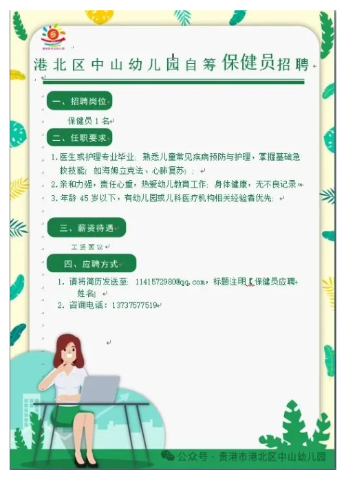 2025年港北區(qū)中山幼兒園保健員招聘啟事