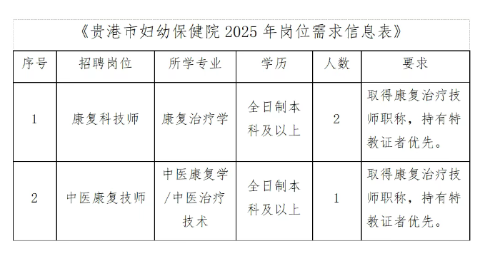 (三)臨床及業(yè)務(wù)人員(詳見(jiàn)《貴港市婦幼保健院2025年崗位需求信息表》)