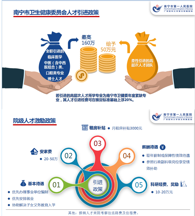 具體招聘公告詳見醫(yī)院官網(wǎng)(http://nn1yy.com/)人才信息板塊。具體招聘辦法由南寧市第一人民醫(yī)院解釋。集團(tuán)成員單位待遇按各成員單位相關(guān)制度執(zhí)行。崗位表中列名的常駐地點(diǎn)不構(gòu)成對具體工作地點(diǎn)或崗位的長期承諾,醫(yī)院保留根據(jù)員工個(gè)人發(fā)展需要及工作需要對員工進(jìn)行集團(tuán)內(nèi)調(diào)動(dòng)、交流的權(quán)利,應(yīng)聘人員應(yīng)予以理解并接受。