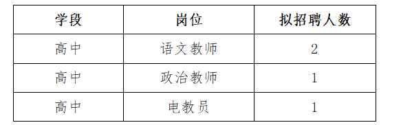 結(jié)合我校教育教學工作實際,經(jīng)研究,現(xiàn)面向社會公開招聘3名學科教師和1名電教員,有關(guān)事項公告如下: