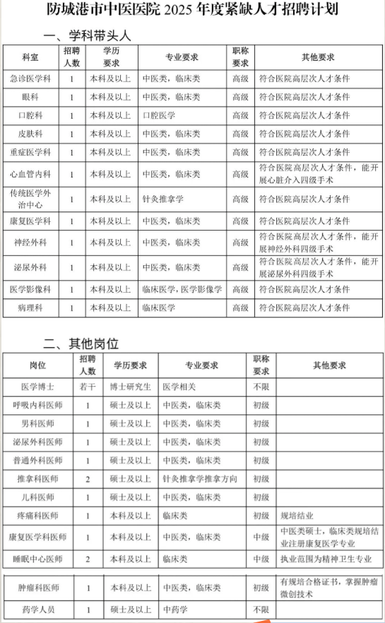 (二)符合醫(yī)院或防城港市引進(jìn)政策的人才可享受相應(yīng)安家待遇。