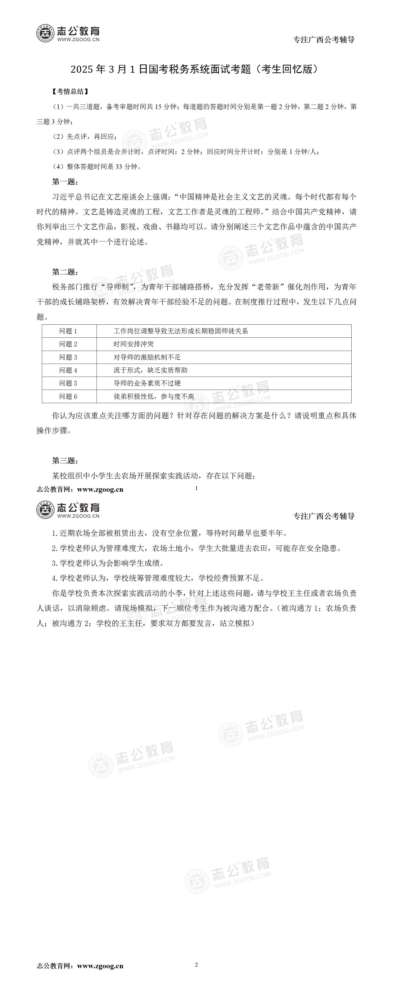 2025年國考稅務(wù)系統(tǒng)3月1日面試考題(考生回憶版)