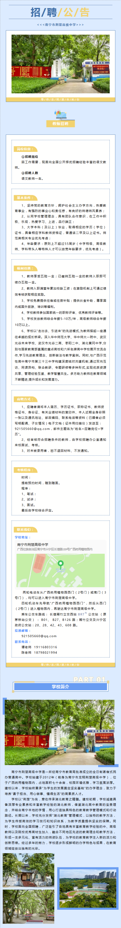 原文標(biāo)題:南寧市荊楚高級(jí)中學(xué)招聘語文教師