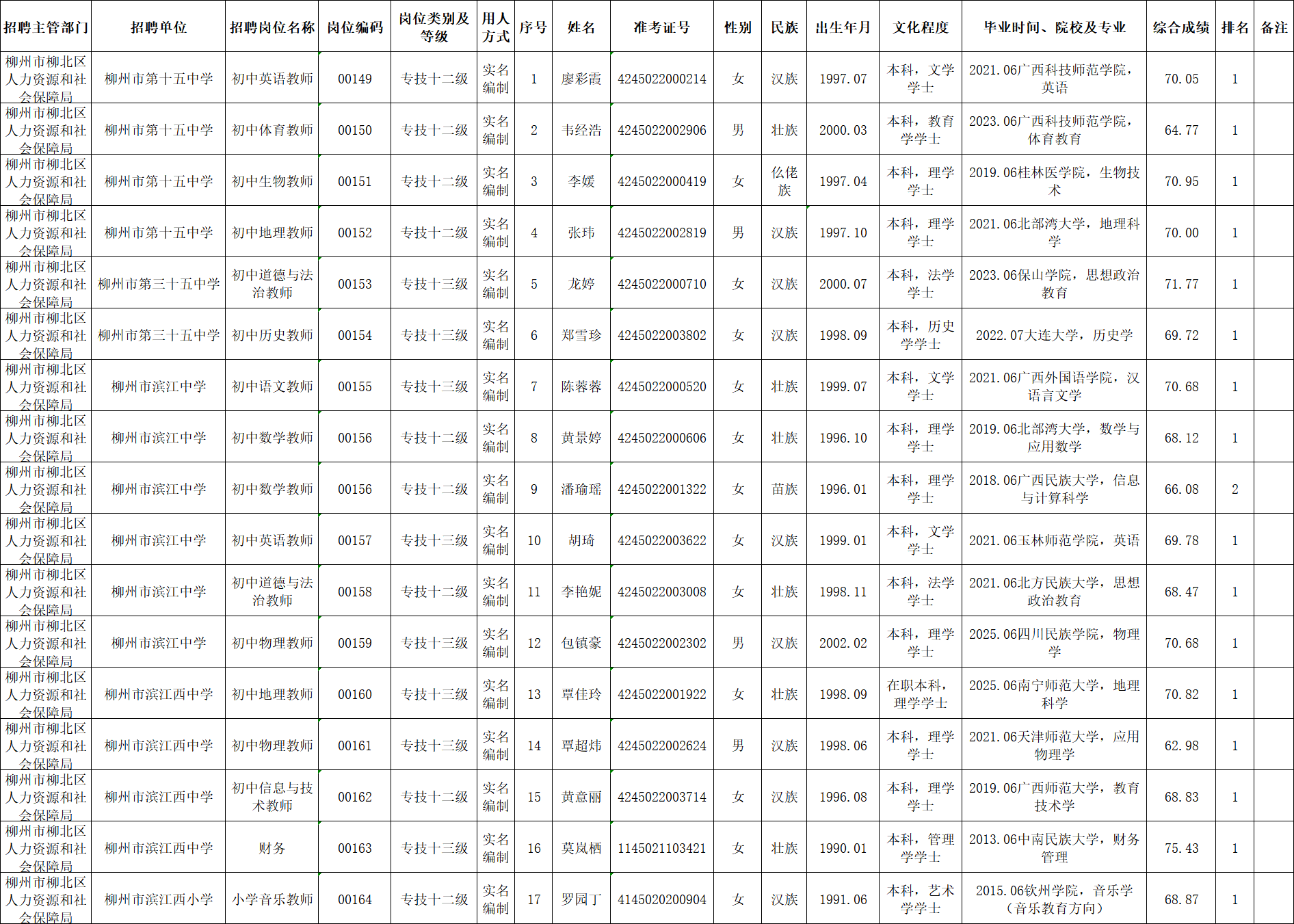柳北區(qū)2025年度下半年事業(yè)單位公開考試招聘工作人員擬聘用人選公示(第四批)
