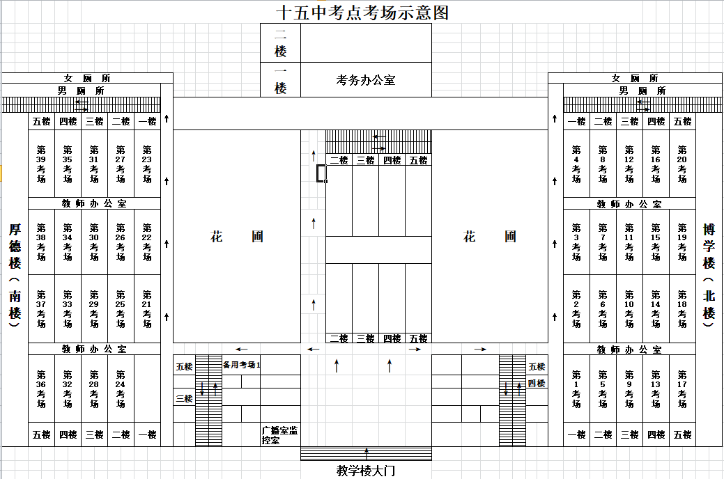 公交車參考:3路、13路、21路、28路、29路、38路、40路、41路、307路??键c門口處于交通干道,送考車輛只能在校門口短暫停留,進入考點考場步行約8分鐘,請規(guī)劃好進入考點時間。