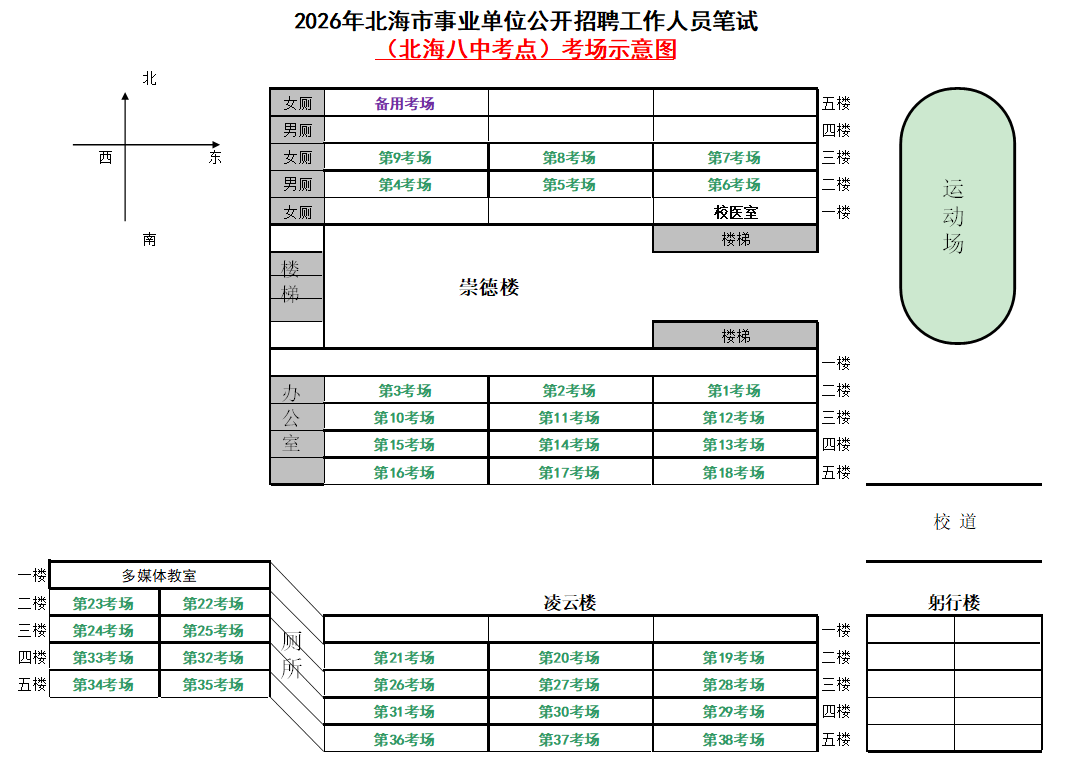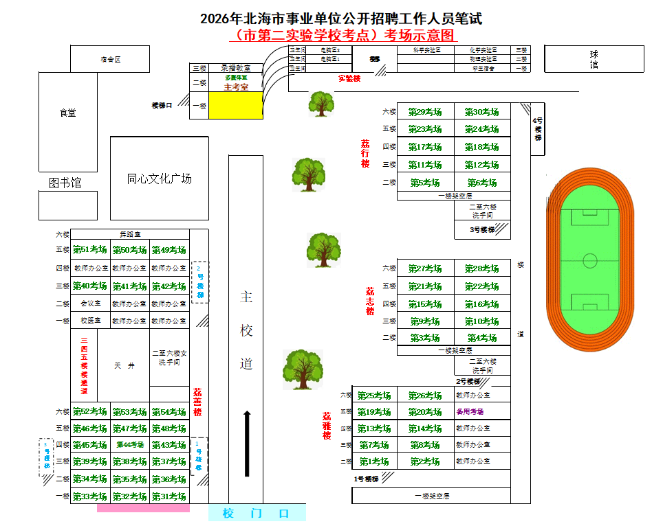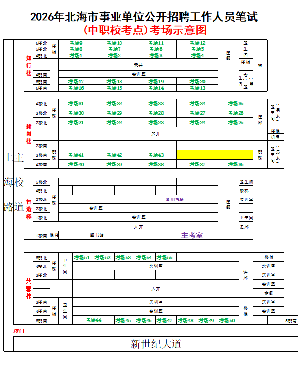 (一)3月28日進(jìn)行綜合管理類(A類)考試,北海市共設(shè)一個(gè)考點(diǎn),考點(diǎn)考場布置為: