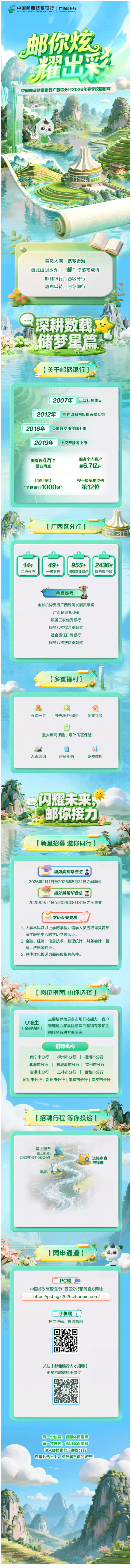 原文標(biāo)題:中國郵政儲蓄銀行廣西區(qū)分行2026年春季校園招聘